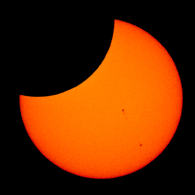 The sky was perfectly clear, and there was little wind, so making the photographs was straightforward. They were made with a 300mm lens and 2x teleconverter attached to a Nikon D200 mounted on a tripod. The effective focal length was 900mm. A coated-glass solar filter was used, and the exposures were at ISO800, f/5.6 x 2 = f/11 at 1/800s and times are those recorded from the camera clock.