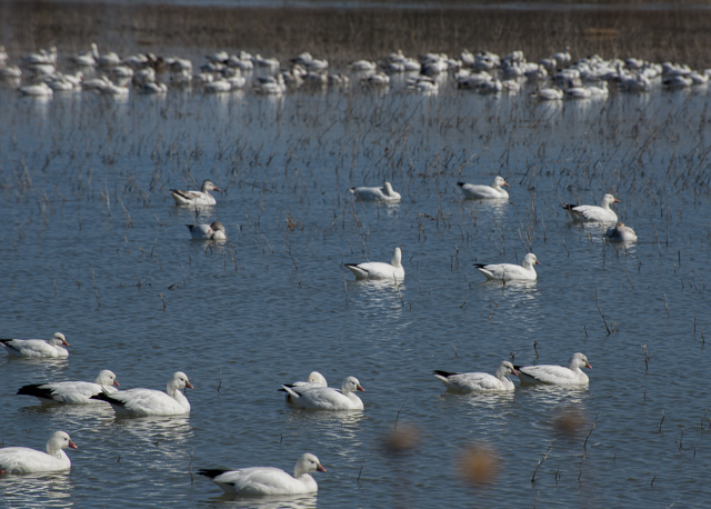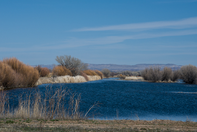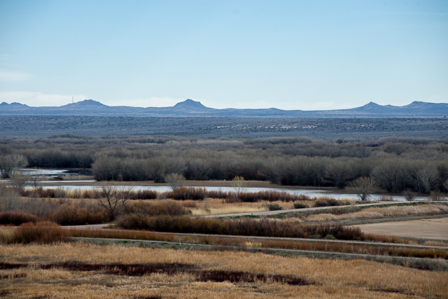 The Bosque del Apache Wildlife Refuge is the wintering ground for several species of large migrating birds. Chief among these are the Sandhill Crane and the Snow Goose whose flocks arrive in November each year and leave to begin their northward migration in late February or early March. Since 2017 was unusually warm, the flocks had nearly all departed ahead of our visit. The refuge is occupies a 10 mile stretch of the floodplain of the Rio Grande River south of Socorro, New Mexico.
