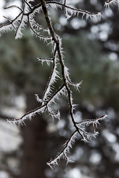 As the fog condensed very slowly, it did so via diffusion limited aggregation into long cyrstalline needles.