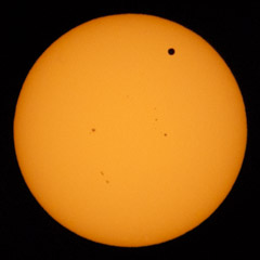 Venus transited across the face of the sun as seen from the United States on 5 June 2012. The transit is a very rare astronomical event which was first observed in 1639. Observing the transit of 1769 was a main purpose of Captain Cook's first voyage to the South Pacific. For the 2012 transit, I traveled to Eastern Utah to photograph it. The first two photos were made from 109° 50.578' W and 38° 38.345' N, alongside Spring Canyon Road which is about 15 miles north of the Island in the Sky in Canyonlands National Park. The third photo was made several miles further east and north alongside US 191. The sky was perfectly clear, although it was quite windy, and there was a considerable amount of dust in the air, but not enough to prevent making the photographs.