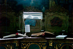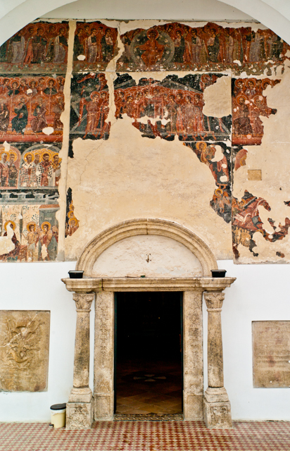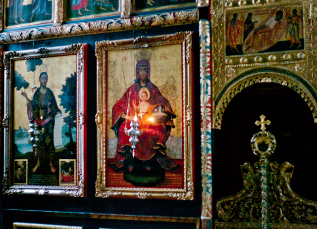 The church at Krusedal Monastery is a darker, older-looking place than the church at the Velika Remeta Monastery. This monastery was established in the early 16th Century.