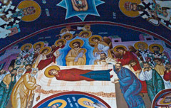 The walls in the church at Velika Remeta Monastery have been re-painted. The monastery was established in the middle of the 16th Century.