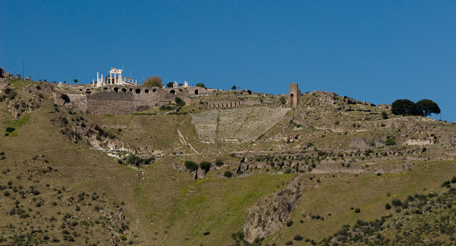 Pergamon was a powerful Greek city that was home to the famous Pergamon Library. Later the city prospered under the Romans. The ancient acropolis sits above the modern Turkish city of Bergama. Below the acropolis is the ruin of the Asclepion where Galen practiced and where he created much of the basis for Western medicine.