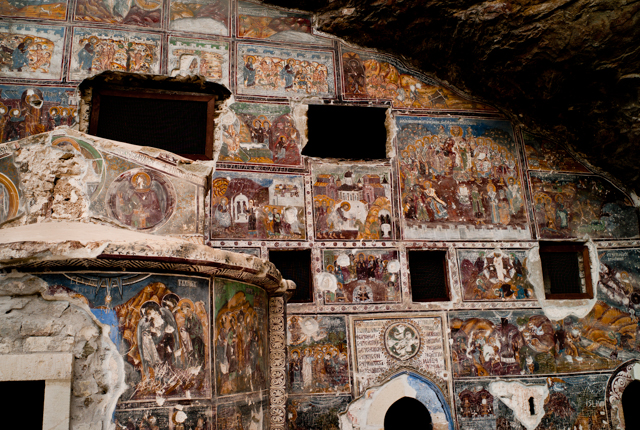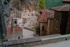 The Sumela Monastery is a Greek Orthodox monastery which began in a cave of the coast mountain range south of Trebizond in 386 CE. It is a sacred site for the Pontic Greeks and was rebuilt and enlarged several times over the centuries. Byzantine Trebizond was a Greek state under the Comnenos family and remained Greek following the fall of Byzantium in 1453. For several more years, Trebizond, and Sumela with it, resisted the Ottomans until it, too, finally fell in 1461.